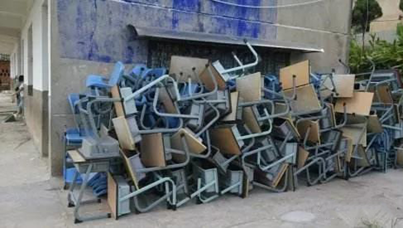 三、由于資金問題,不少農村中小學仍有不達標課的桌椅在“超期服役”。