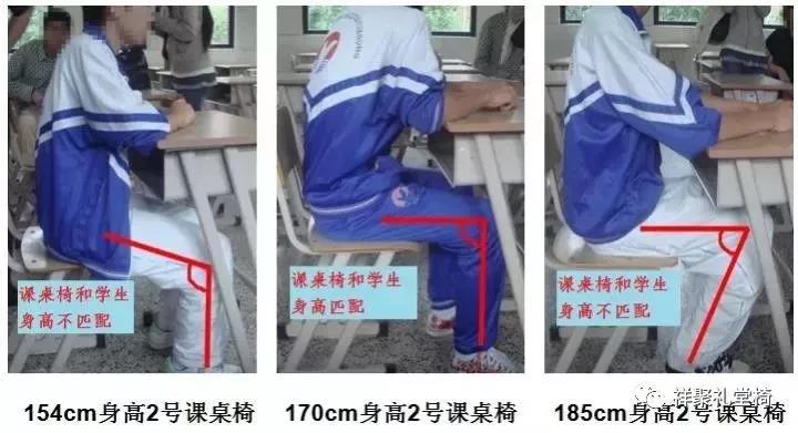 課桌過(guò)高,會(huì)造成學(xué)生用眼過(guò)近,影響視力的發(fā)育;課桌過(guò)矮,會(huì)使學(xué)生書(shū)寫時(shí)彎腰低頭、駝背,影響脊椎的發(fā)育;課椅過(guò)高,使得學(xué)生腳不能平踏地面,身體不穩(wěn),容易疲勞;課桌下空間過(guò)小,使得學(xué)生腿無(wú)法完全放進(jìn)去,下肢受壓,血流不暢。