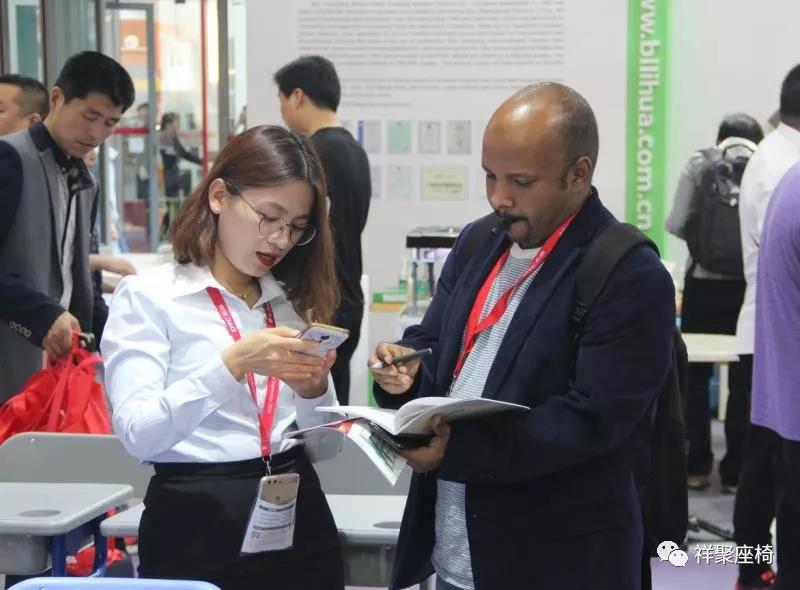 位于A區2號館二樓,S2.2E08展位的祥聚座椅,在本屆展會中,祥聚座椅以《中華人民共和國國家標準》 執行企業的身份展現出作為座椅制造行業的企業標桿風范,展位現場更是吸引了來自不同國家地區的采購商。采購商在執行“國家標準”的產品面前,紛紛表示對產品非常有信心,并愿意與祥聚座椅成為長期合作關系。