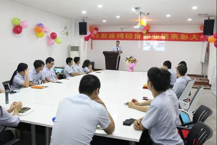 在頒獎環節, 祥聚座椅總經理段總對獲獎精英表示祝賀,并鼓勵同樣付出艱辛努力、取得優異成績的銷售精英,能在下半年繼續再創佳績,共同創造祥聚座椅更廣闊的天地。
