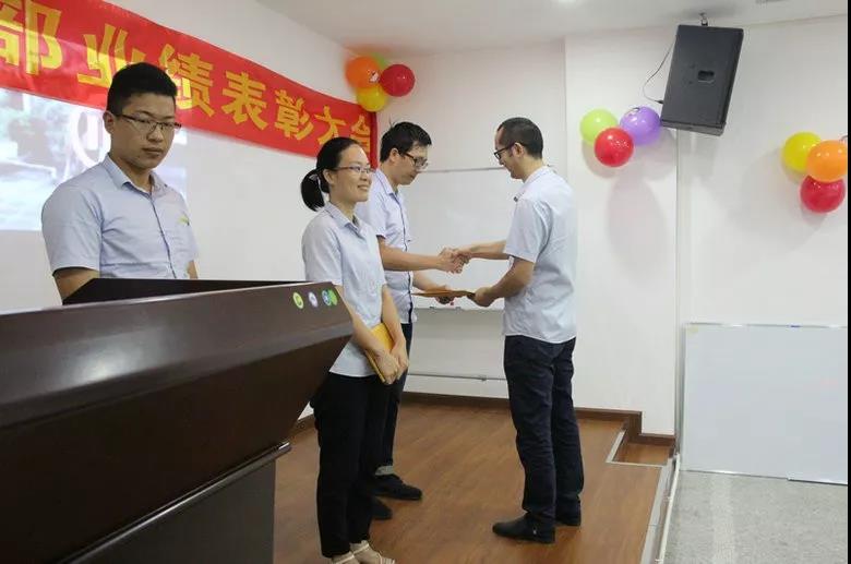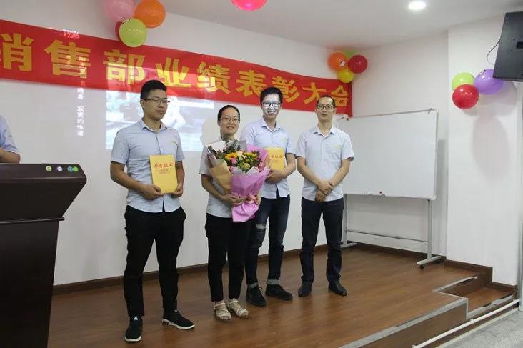 會議上,銷售總經理劉總匯報了2019年上半年銷售工作及市場情況,經過上半年的不懈努力,本年度上半年營業額同比去年同期處于增長,在本次總結大會上銷售部劉總給予全體員工工作上的肯定,同時也對未來工作給予鼓勵,寄予厚望,隨后公布了五位完成率最高的銷售精英,給予更高的榮譽以及獎勵。