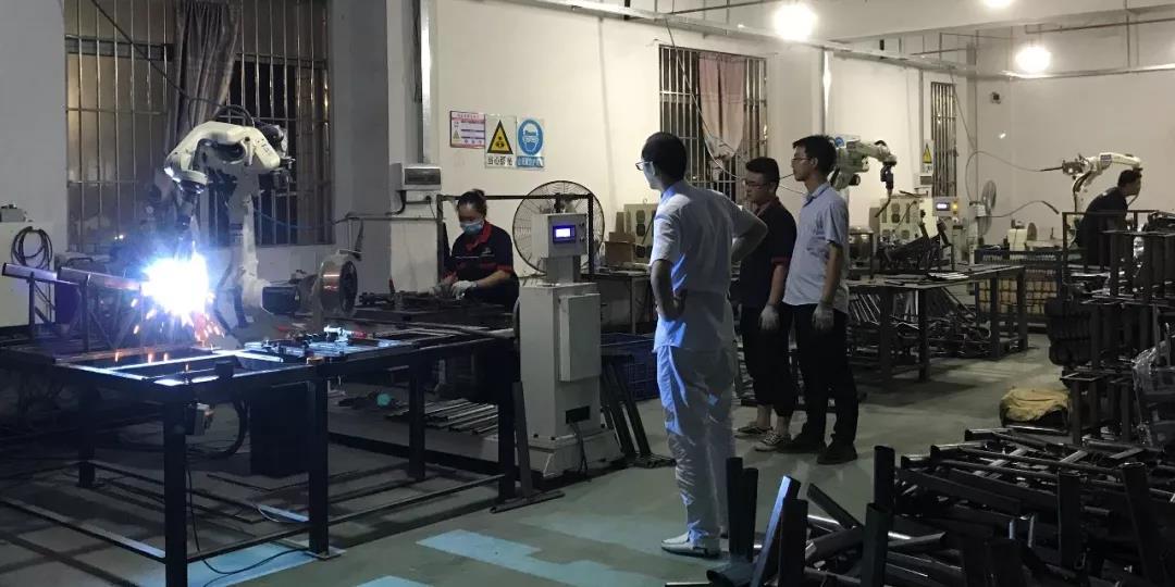 雖然天氣炎熱,夜晚的工廠車間內仍是一派繁忙的景象,伴隨3臺大型機械手臂的呲呲聲,工人們都在自己的崗位上辛勤的工作著,切、割、焊....