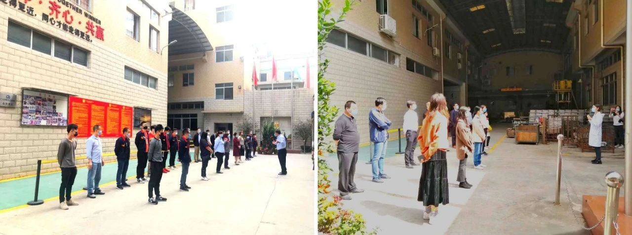 邀請政府醫療人員進行復工復產安全衛生培訓,公司各處設有疫情防控指南,灌輸防控知識,隨時隨地加強全員疫情防控意識。