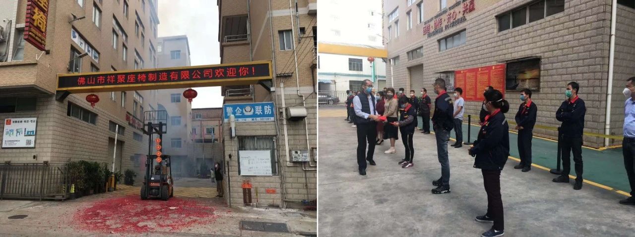 祥聚座椅廠區內生產車間,遵循當地政府規定,正在陸續安排復工,車間員工逐步有序地投入生產工作當中。