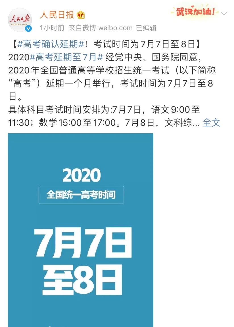 # 全國高考推遲一個月舉行 #