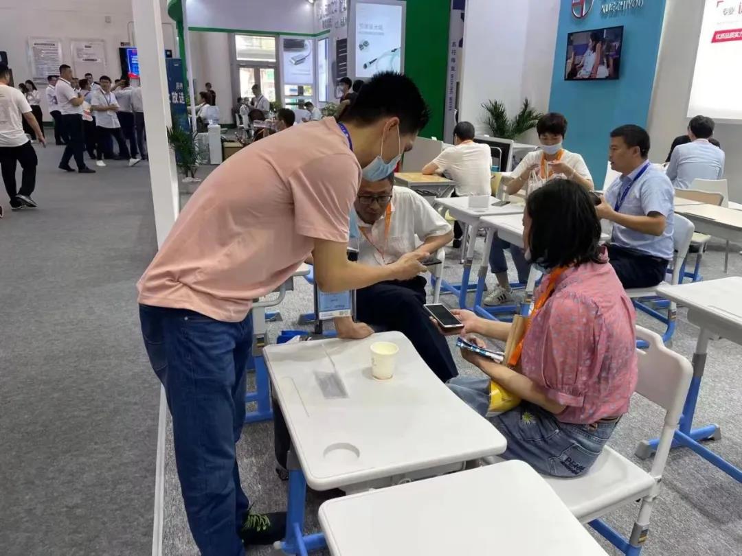 展會首日人流絡繹不絕,祥聚座椅展位所吸引了眾多教育行業工作者、家具行業專家及各地客戶朋友駐足參觀,工作人員耐心地介紹公司產品并與觀眾溝通洽談,現場氛圍火熱。
