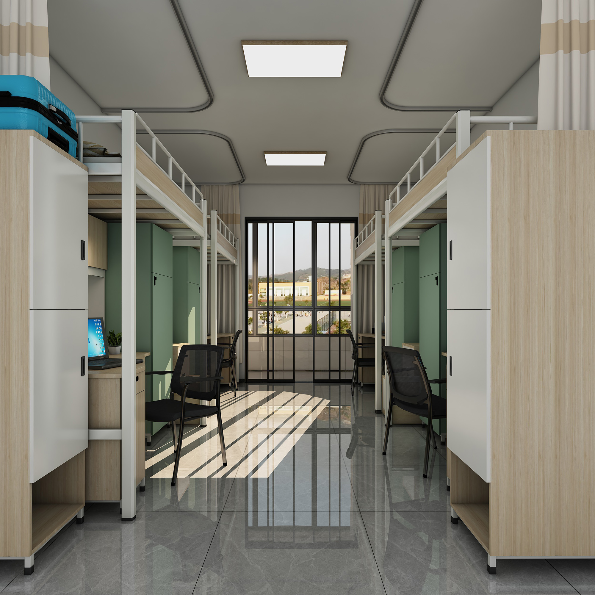 8、床護欄:采用1.0mm厚優質管材彎制而成,長度需根據床的長度調節做滿,確保學生安全,封板采用16mm厚刨花板;