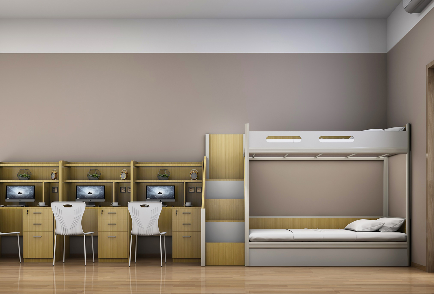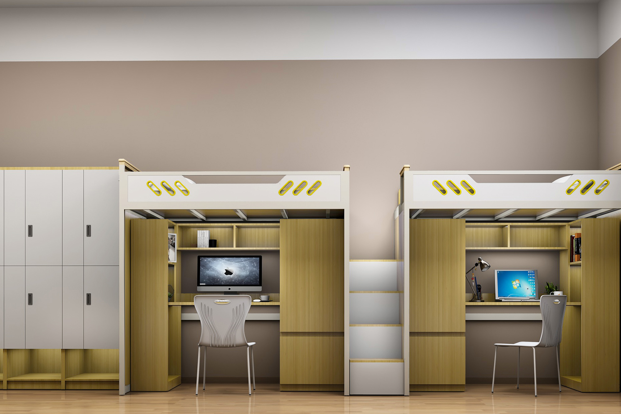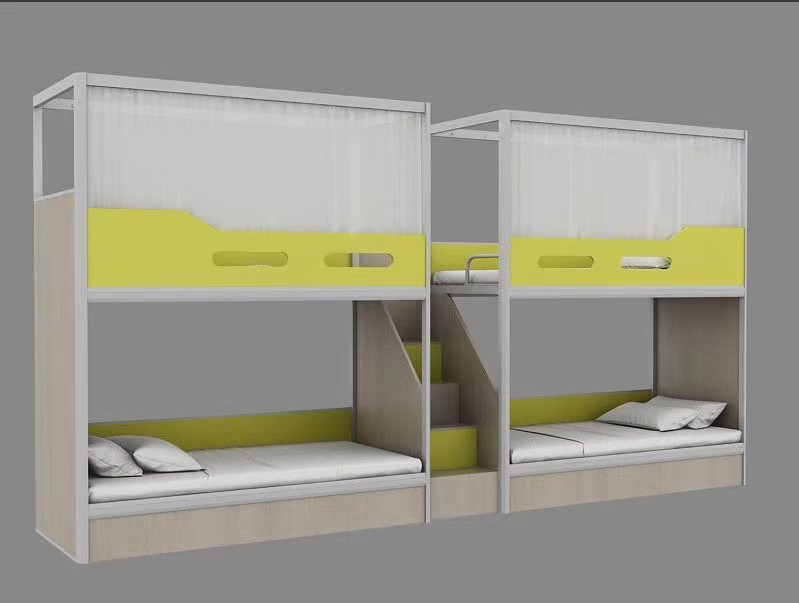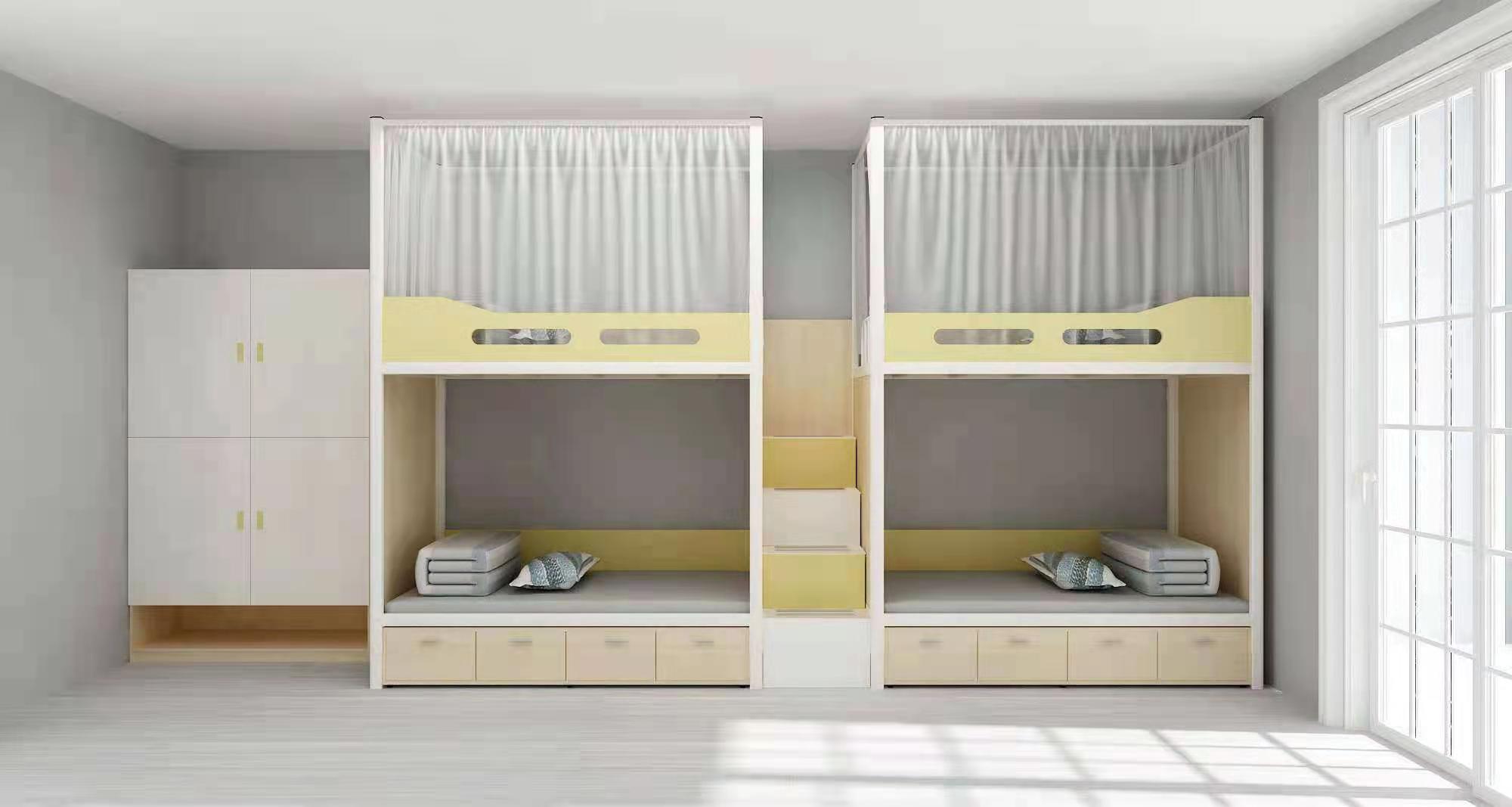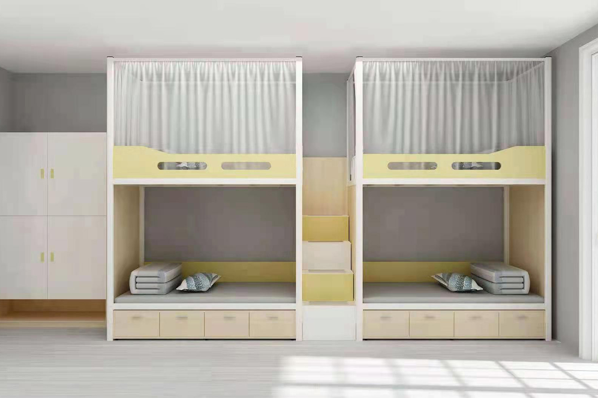 5、床梯采用E1級多層實木夾板,三聚氰胺板飾面,制作,厚度18mm