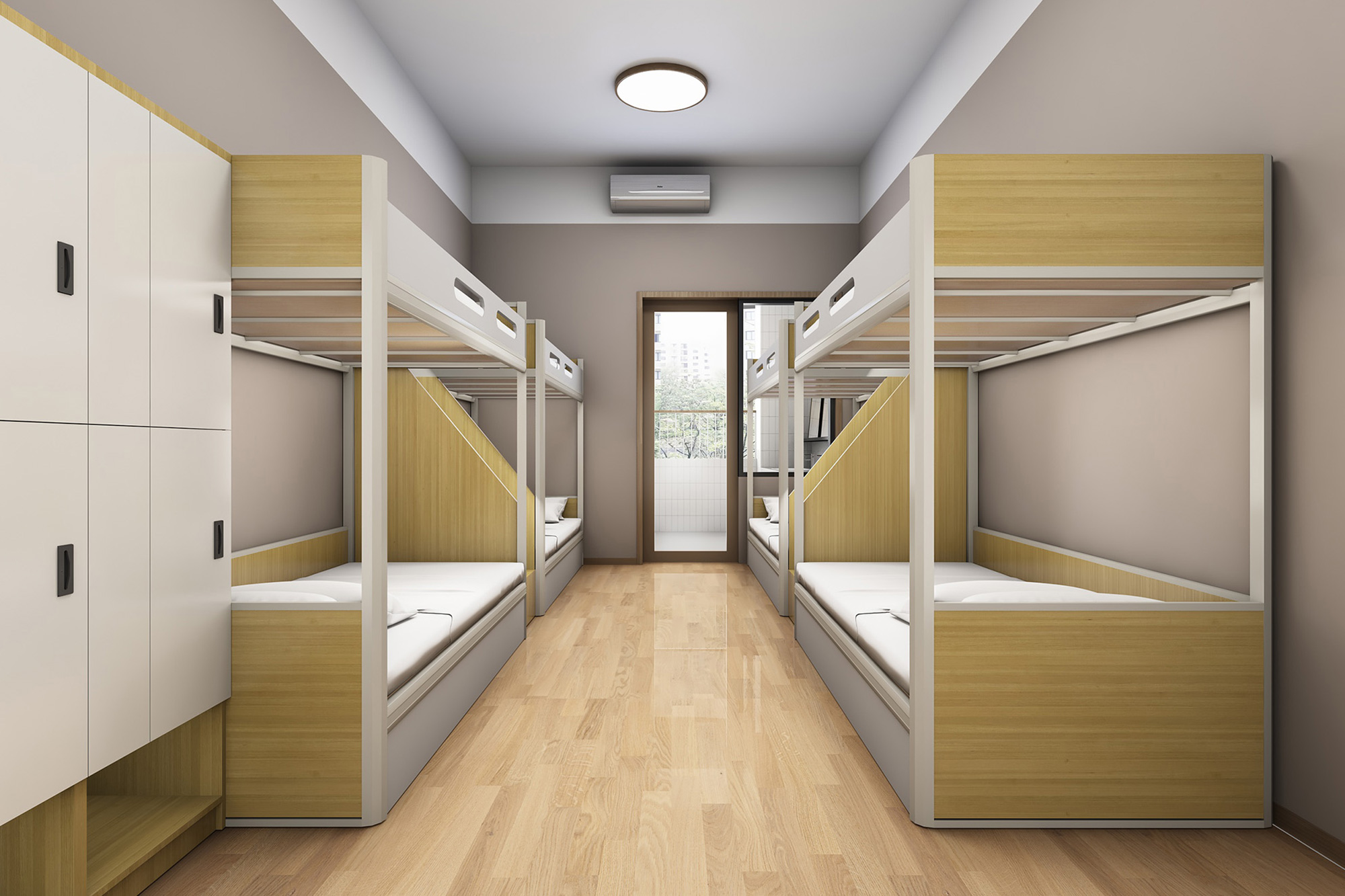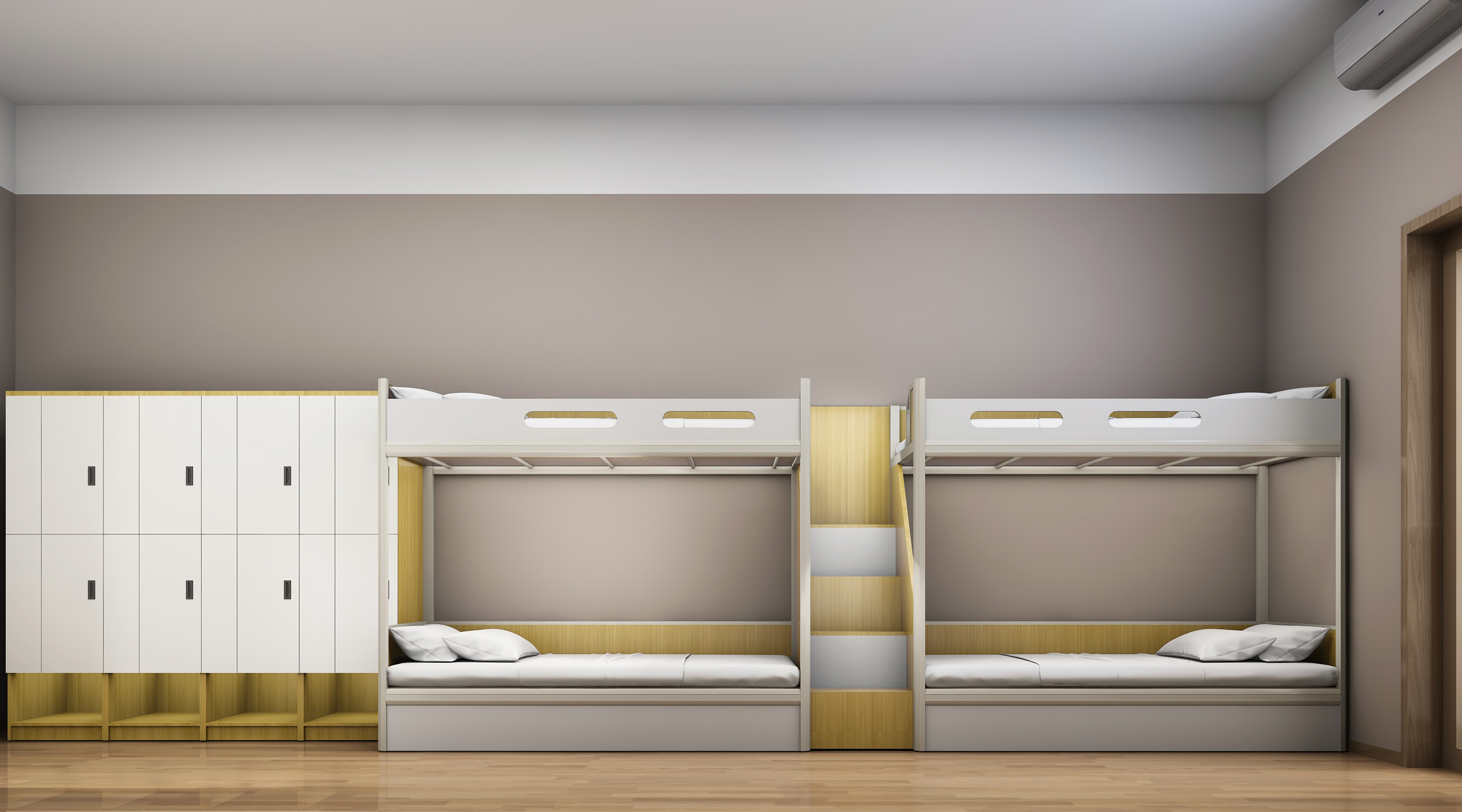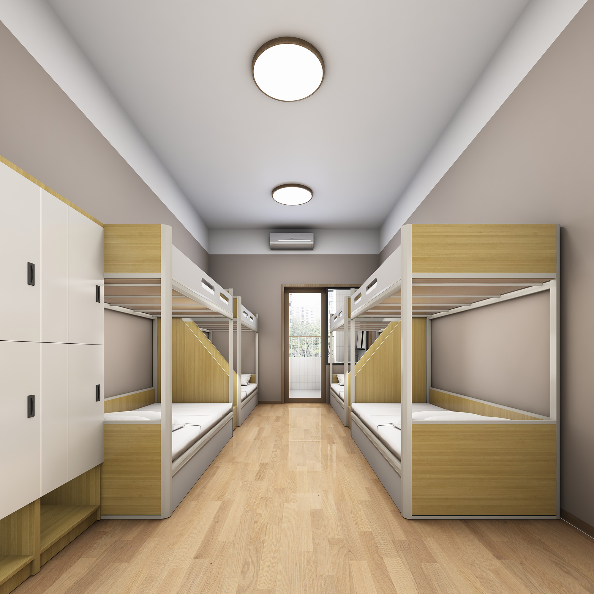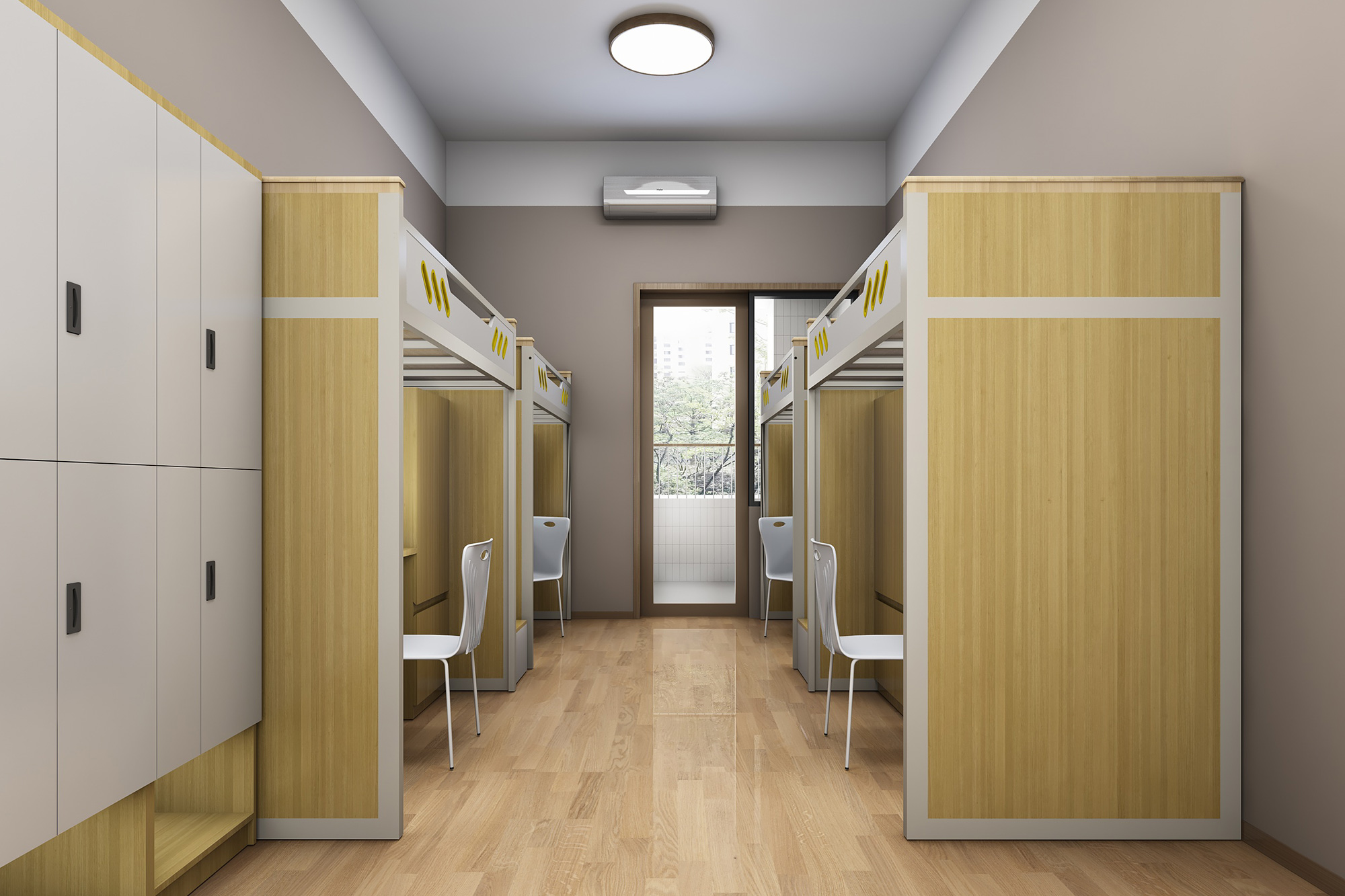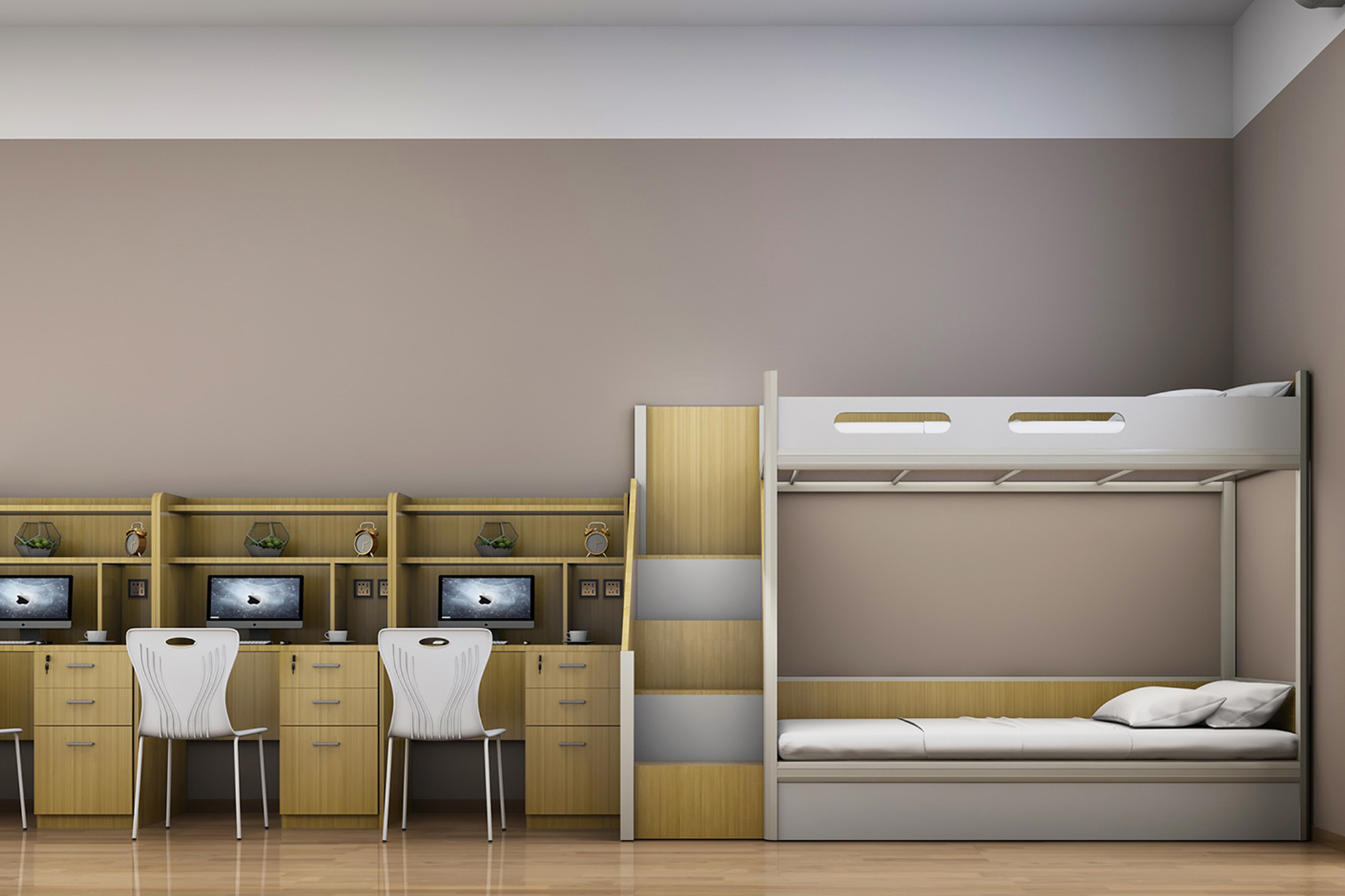 5、床梯采用E1級多層實木夾板,三聚氰胺板飾面,制作,厚度18mm