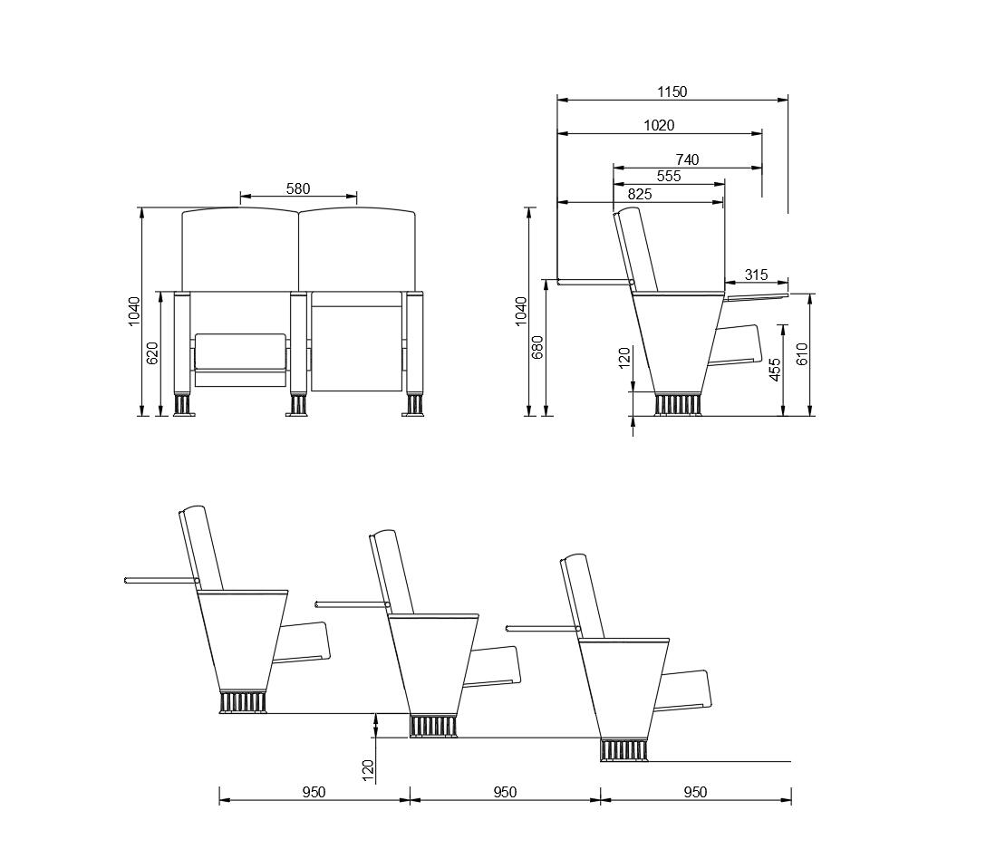 1.椅子總高度1050mm,連排座椅中心距離560mm--580mm,座面高度440mm;